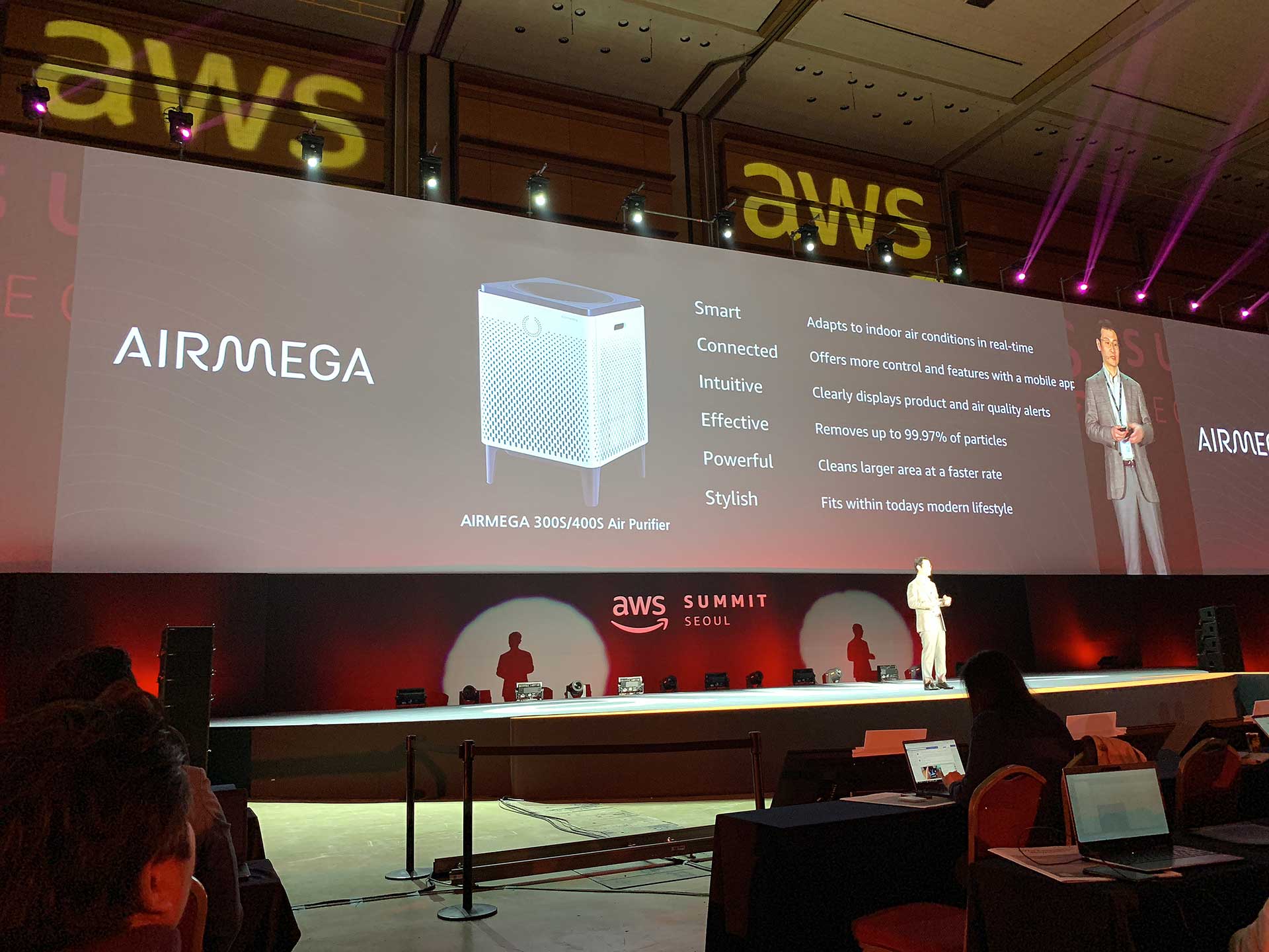 안진혁 웅진 코웨이 상무의 웅진코웨이의 공기청정기가 알렉사를 어떻게 활용하는지에 대한 설명.