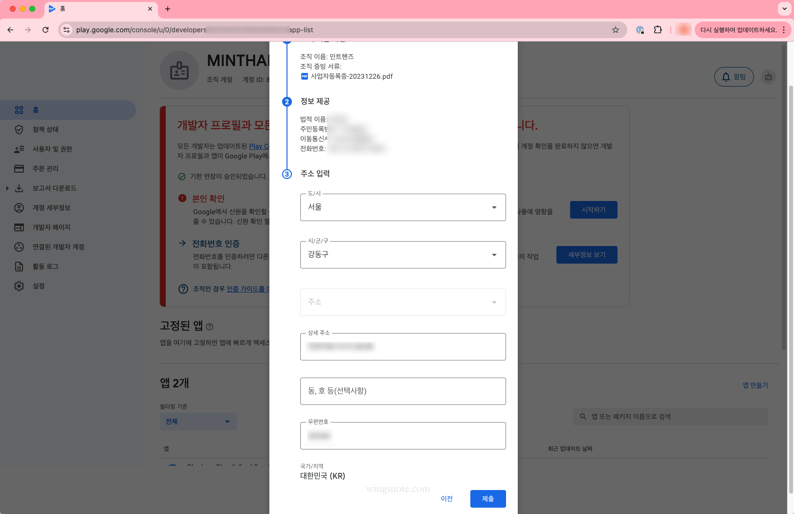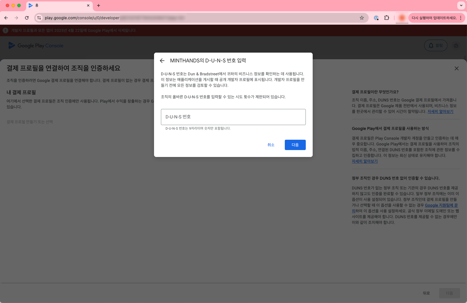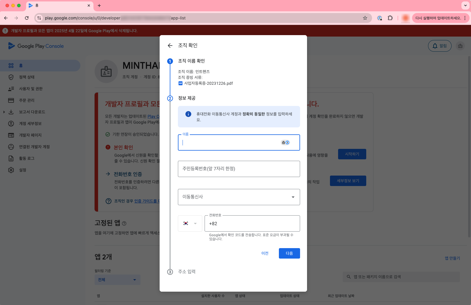 구글 플레이 개발자 계정 확인 절차
