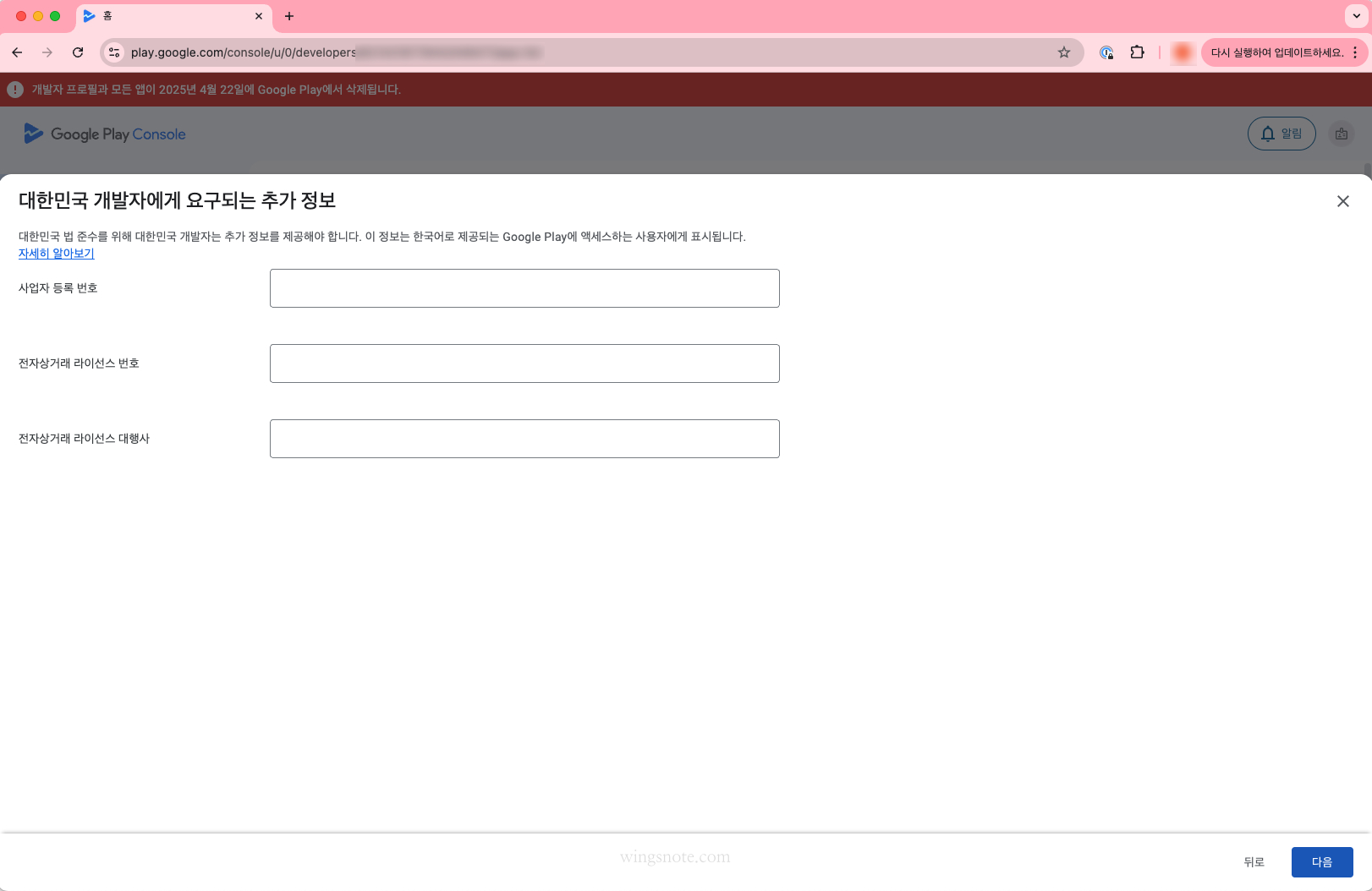 다음은 "대한민국 개발자에게 요구되는 추가 정보" 페이지 입니다.