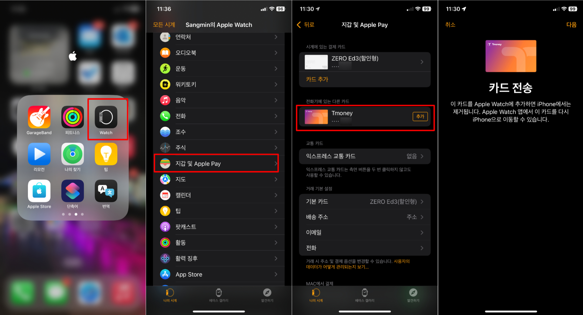 애플워치에 티머니 추가하는 방법