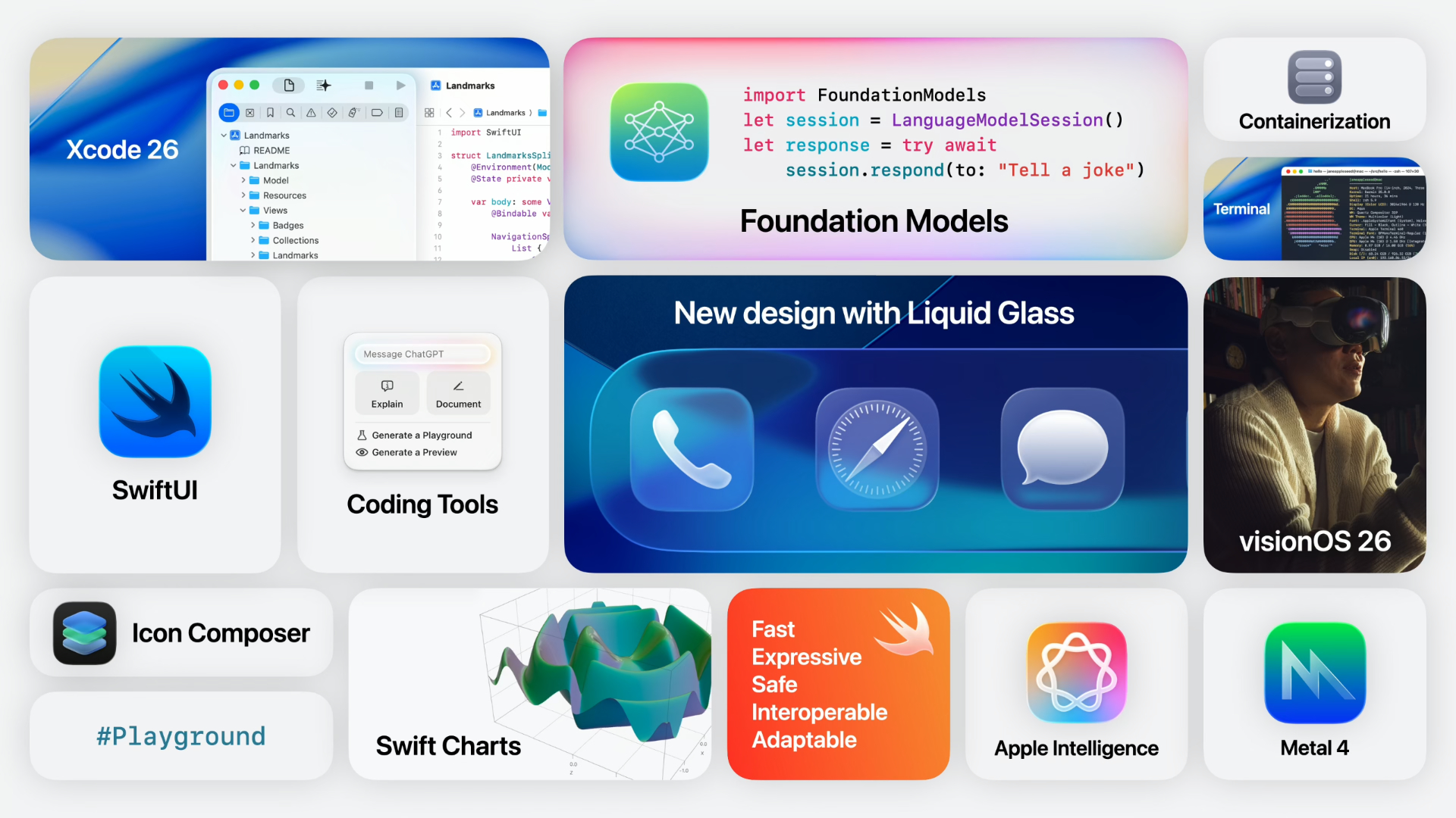 애플의 2025년 WWDC인 WWDC25 의 Platforms State of the Union 세션 내용을 요약합니다.이 세션에서는 개발자들이 이번 26버전 플랫폼에서 사용할 수 있는 대표적인 새로운 기능들에 대한 소개를 하고 있습니다.이 세션을 보고 나서 필요한 세부 세션들을 확인해 보면 될 것 같습니다. --개요애플실리콘을 이용,Metal : Low level API를 이용해 하드웨어의 잠재력을 최대한 발휘.Apple Intelligence : 강력한 생성 모델과 개인정보 보호 기능.Swift : 시스템, SDK, App 전반에 걸쳐 높은 성능과 안전을 제공.SwiftUI : 풍부한 상호작용. 애니메이션과 적응형 디자인 구현.High level APIsiCloud 및 CloudKit : 기기간 앱 ..